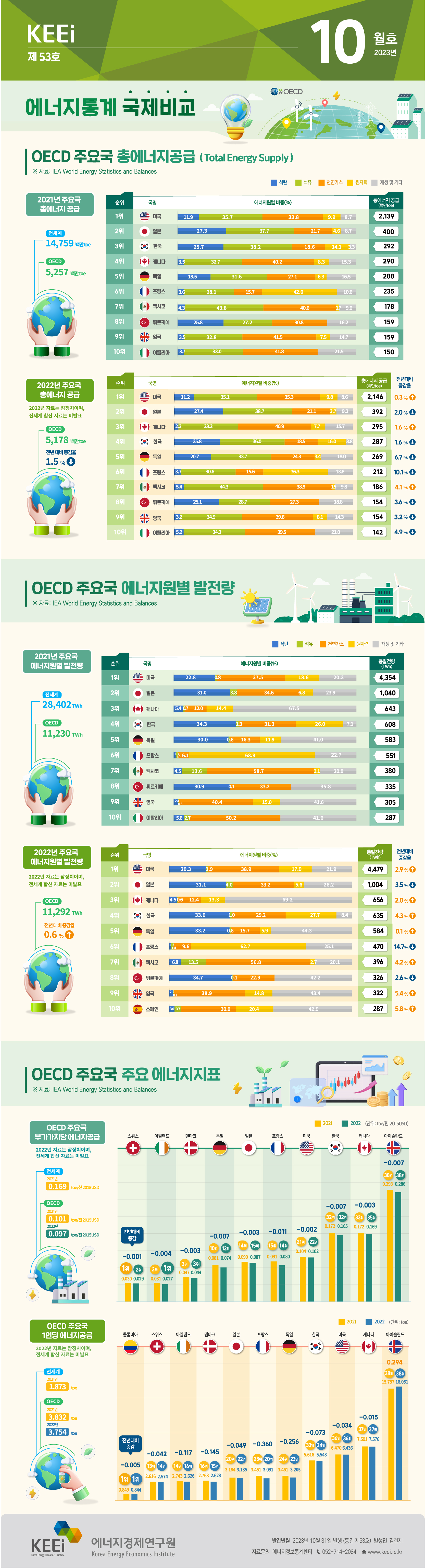 에너지통계 국제비교(제53호, 2023년 10월) Name Date2023/11/14 Hit289 첨부파일 [KEEI]23년_10월_인포그래픽(53호)_최종본_전체.pdf 다운로드 바로보기 [KEEI]23년_10월_인포그래픽(53호)_최종본_A4_1p.pdf 다운로드 바로보기 [KEEI]23년_10월_인포그래픽(53호)_최종본_A4_2p.pdf 다운로드 바로보기 [KEEI]23년_10월_인포그래픽(53호)_최종본_A4_3p.pdf 다운로드 바로보기 [KEEI]23년_10월_인포그래픽(53호)_jpg업로드용.jpg 다운로드