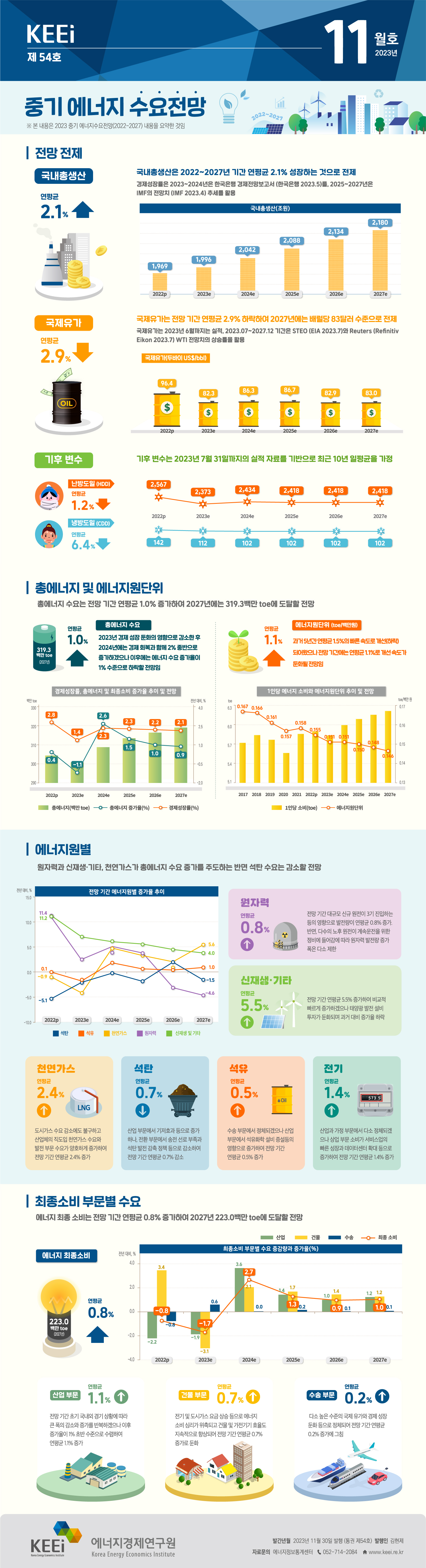 중기 에너지 수요전망(제54호, 2023년 11월) Name Date2023/11/30 Hit167 첨부파일 [KEEI]23년_11월_인포그래픽(54호)_jpg업로드용.jpg 다운로드 [KEEI]23년_11월_인포그래픽(54호)_최종본_A4_1p.pdf 다운로드 바로보기 [KEEI]23년_11월_인포그래픽(54호)_최종본_A4_2p.pdf 다운로드 바로보기 [KEEI]23년_11월_인포그래픽(54호)_최종본_A4_3p.pdf 다운로드 바로보기 [KEEI]23년_11월_인포그래픽(54호)_최종본_전체.pdf 다운로드 바로보기